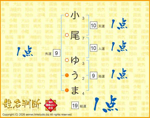 小尾ゆうまさんの総運は19画の1点!