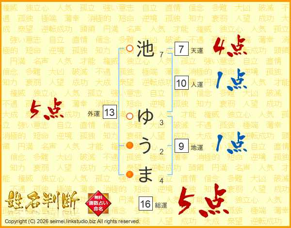 池ゆうまさんの総運は16画の5点!