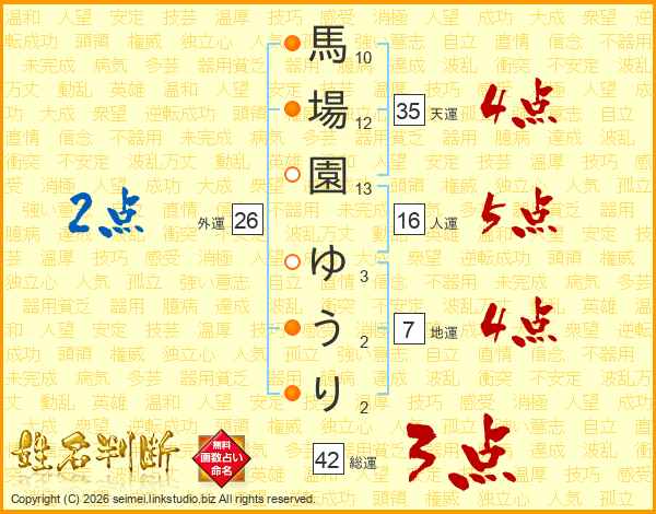馬場園ゆうりさんの総運は42画の3点!