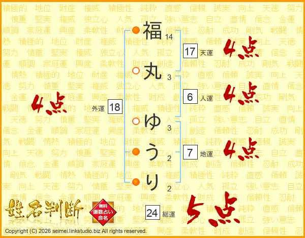 福(14画)丸(3画) ゆ(3画)う(2画)り(2画)
