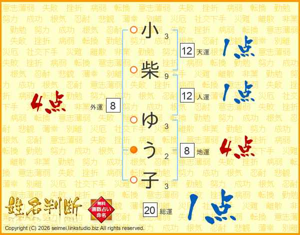 小柴ゆう子さんの総運は20画の1点!