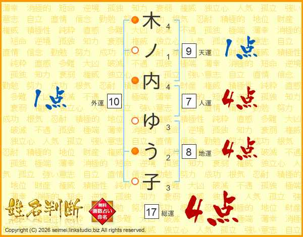 木ノ内ゆう子さんの総運は17画の4点!
