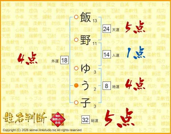 飯野ゆう子さんの総運は32画の5点!