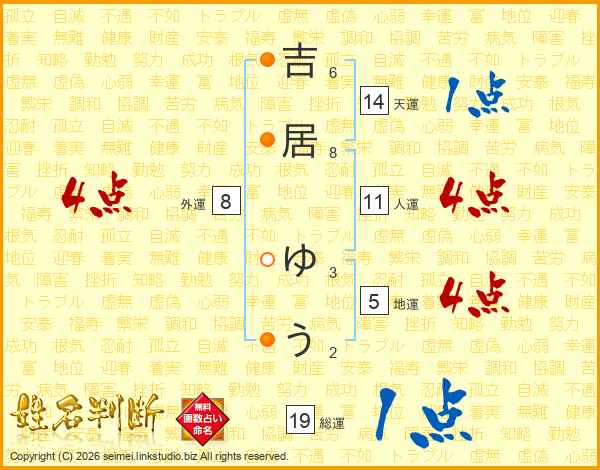 吉(6画)居(8画) ゆ(3画)う(2画)