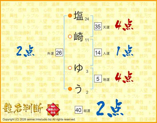塩崎ゆうさんの総運は40画の2点!