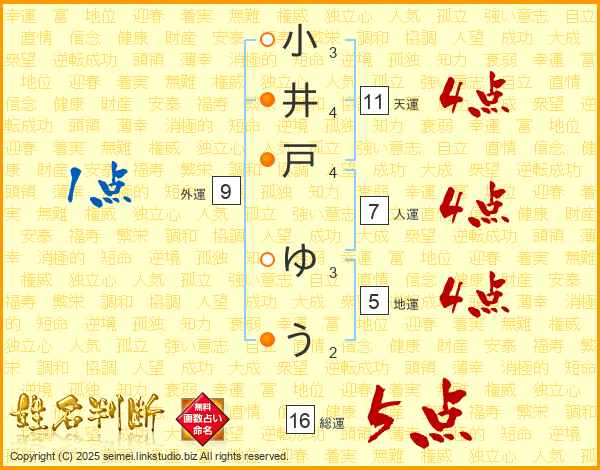 小井戸ゆうさんの総運は16画の5点!