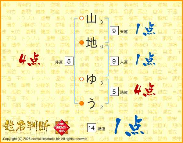 山地ゆうさんの総運は14画の1点!