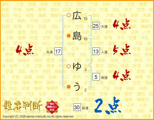 広島ゆうさんの総運は30画の2点!