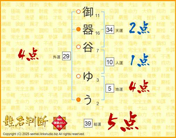 御(11画)器(16画)谷(7画) ゆ(3画)う(2画)
