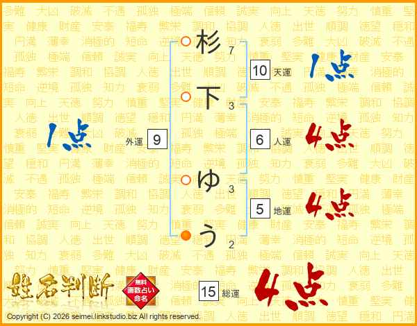 杉下ゆうさんの総運は15画の4点!