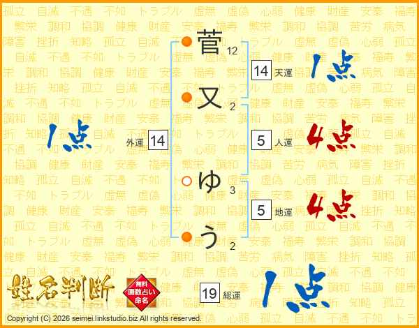 菅又ゆうさんの総運は19画の1点!