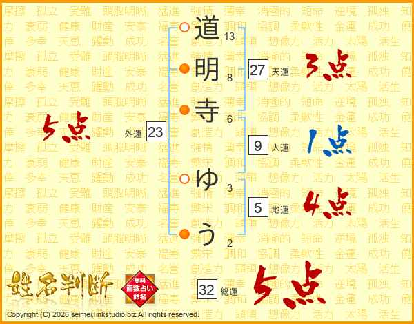 道明寺ゆうさんの総運は32画の5点!