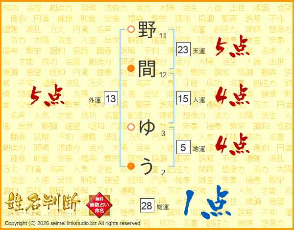 野間ゆうさんの外運は13画の5点!