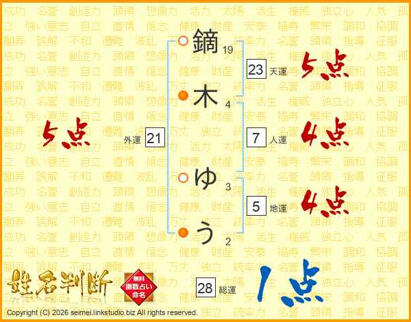 鏑木ゆうさんの外運は21画の5点!