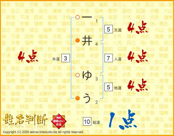 一井ゆうさんの総運は10画の1点!