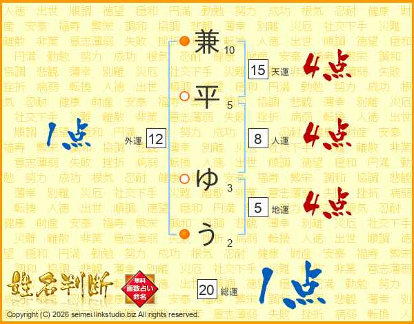 兼平ゆうさんの総運は20画の1点!