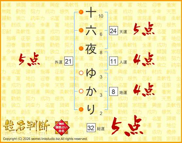 十(10画)六(6画)夜(8画) ゆ(3画)か(3画)り(2画)