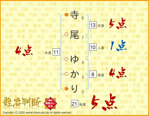 寺尾ゆかりさんの天運は13画の5点!