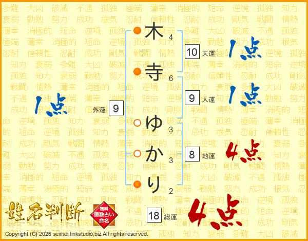 木寺ゆかりさんの総運は18画の4点!