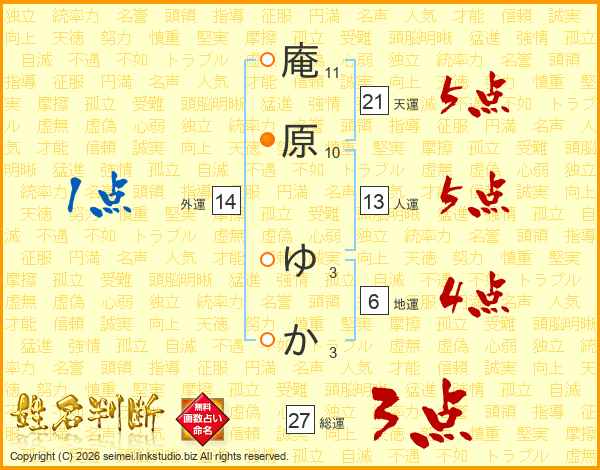 庵原ゆかさんの総運は27画の3点!