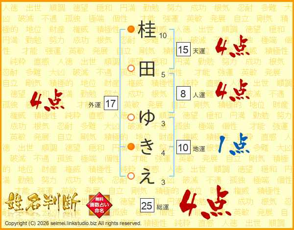 桂(10画)田(5画) ゆ(3画)き(4画)え(3画)