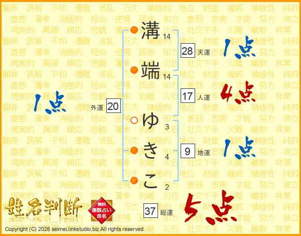 溝端ゆきこさんの総運は37画の5点!