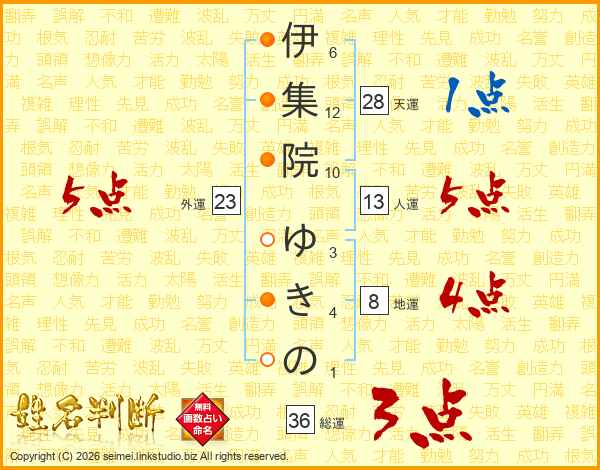伊集院ゆきのさんの総運は36画の3点!