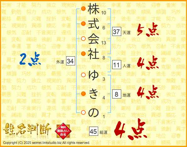 株(10画)式(6画)会(13画)社(8画) ゆ(3画)き(4画)の(1画)