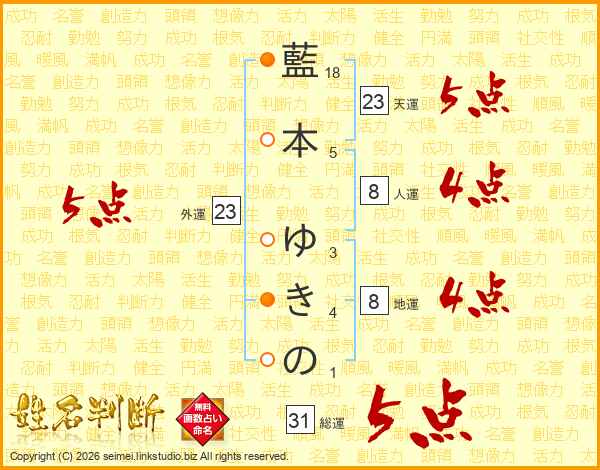 藍本ゆきのさんの外運は23画の5点!