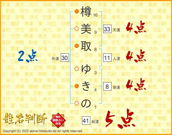 樽美取ゆきのさんの総運は41画の5点!