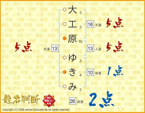大工原ゆきみさんの総運は26画の2点!