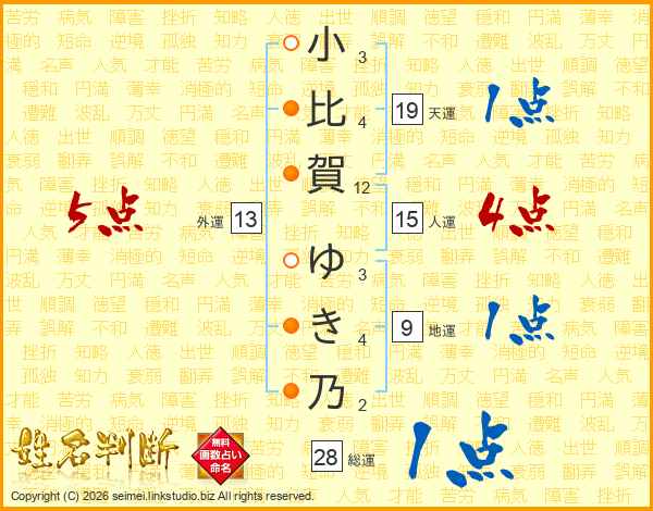 小比賀ゆき乃さんの外運は13画の5点!