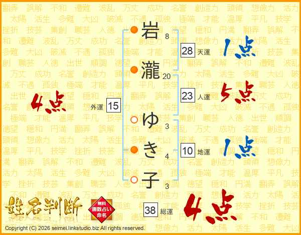 岩瀧ゆき子さんの総運は38画の4点!