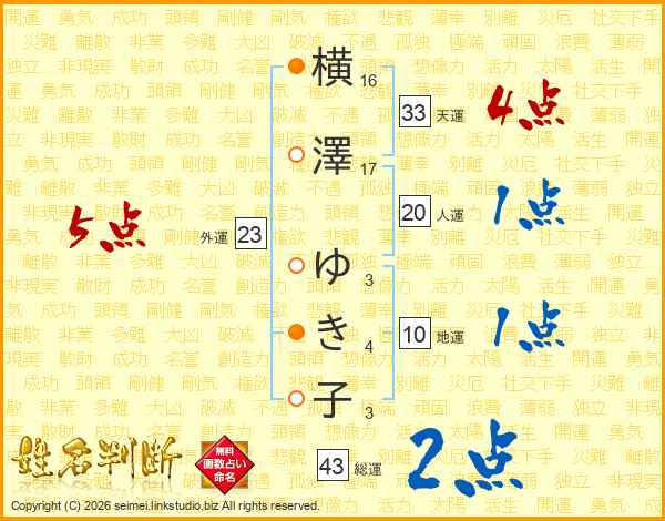 横澤ゆき子さんの総運は43画の2点!