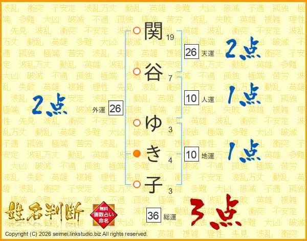 関谷ゆき子さんの天運は26画の2点!