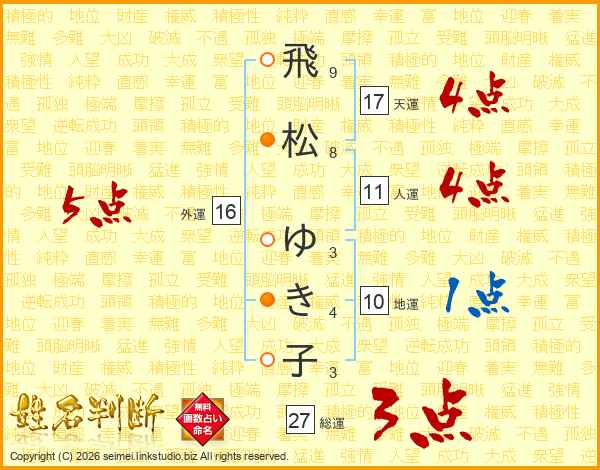 飛松ゆき子さんの総運は27画の3点!
