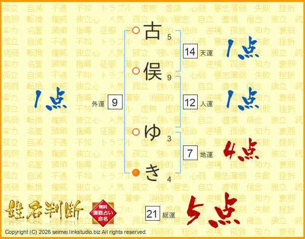 古俣ゆきさんの総運は21画の5点!