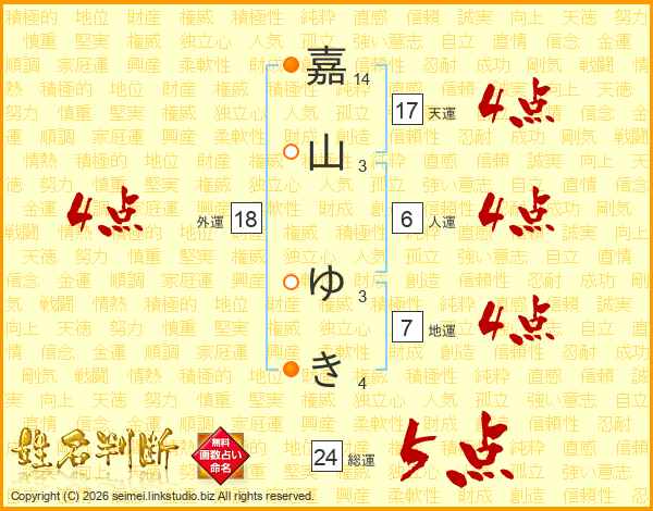 嘉山ゆきさんの外運は18画の4点!