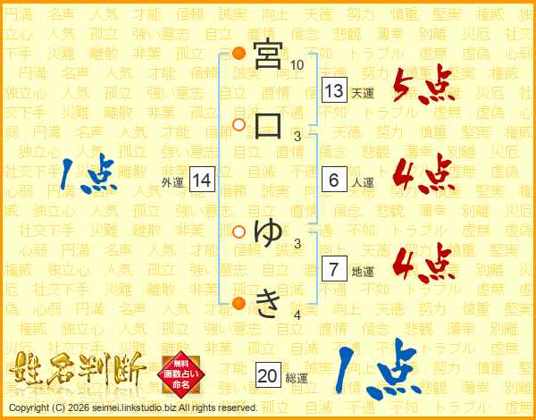 宮口ゆきさんの外運は14画の1点!