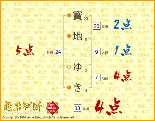 寳(20画)地(6画) ゆ(3画)き(4画)