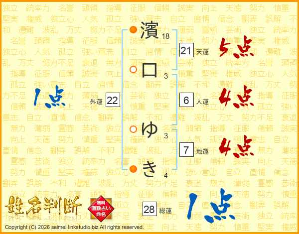 濱口ゆきさんの天運は21画の5点!