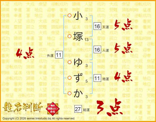 小塚ゆずかさんの総運は27画の3点!