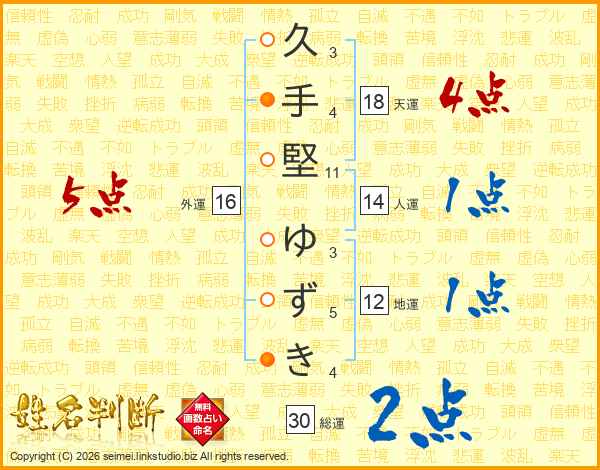 久手堅ゆずきさんの天運は18画の4点!