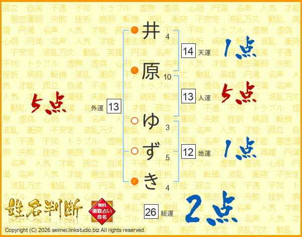 井(4画)原(10画) ゆ(3画)ず(5画)き(4画)