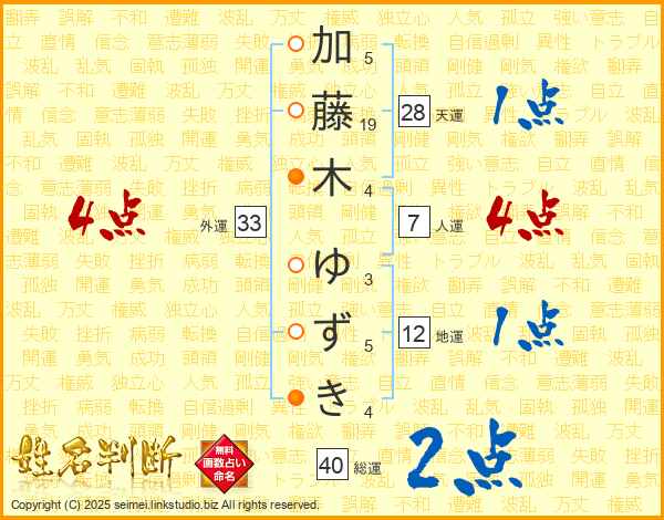 加(5画)藤(19画)木(4画) ゆ(3画)ず(5画)き(4画)