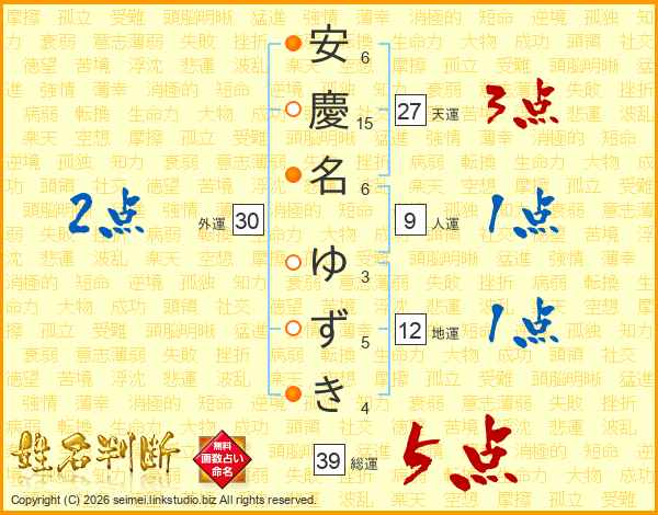 安慶名ゆずきさんの総運は39画の5点!