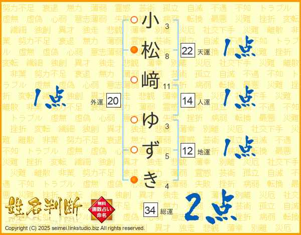 小松﨑ゆずきさんの総運は34画の2点!