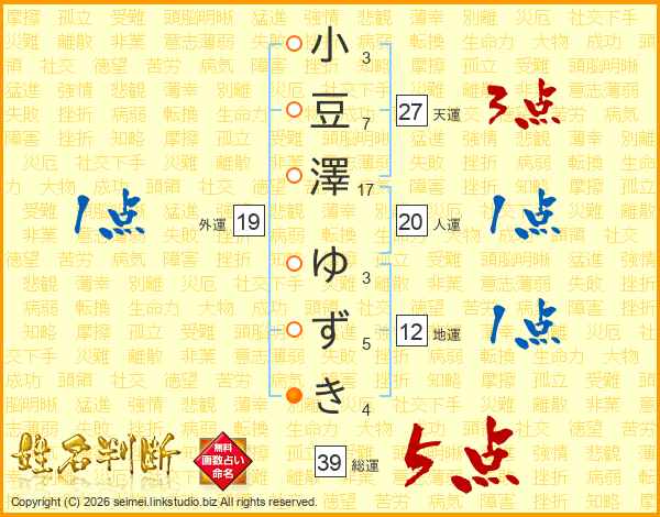 小(3画)豆(7画)澤(17画) ゆ(3画)ず(5画)き(4画)