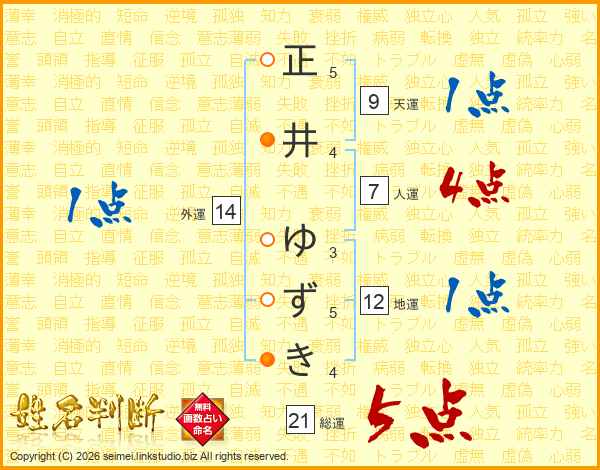 正(5画)井(4画) ゆ(3画)ず(5画)き(4画)