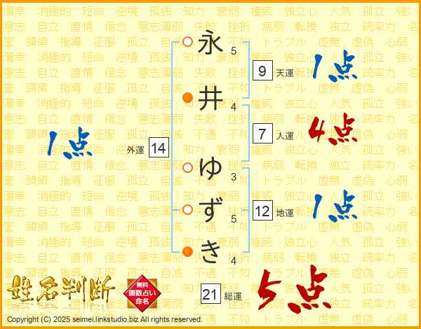 永(5画)井(4画) ゆ(3画)ず(5画)き(4画)